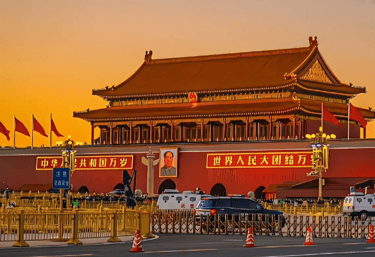 Tiananmen Square, located in the heart of Beijing, China, is one of the largest city squares in the world. Its name comes from the Tiananmen (Gate of Heavenly Peace) to its north, which leads to the Forbidden City.
