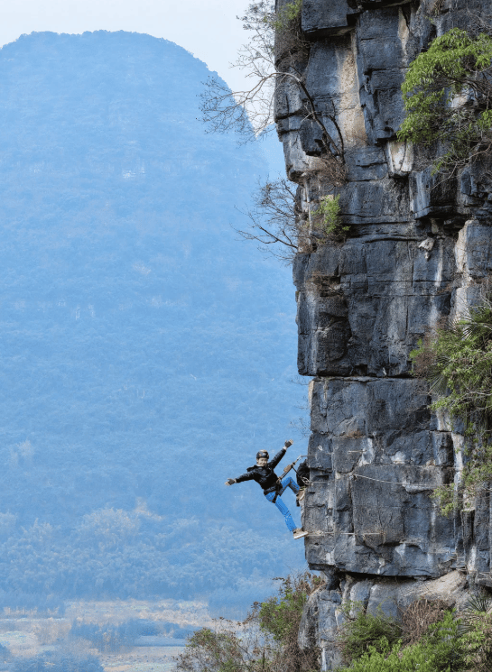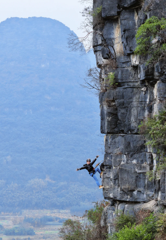 For those who want to experience Yangshuo’s iconic limestone peaks from a vertical perspective, Via Ferrata (飞拉达)—Italian for "iron path"—offers an exhilarating blend of hiking and rock climbing. Unlike traditional technical climbing, this "iron road" uses a system of steel cables, rungs, and ladders permanently fixed to the rock, allowing adventurers to traverse sheer cliff faces with safety and precision. Located in the heart of the karst landscape, the Yangshuo route typically challenges you with heart-pounding traverses and suspension bridges high above the Yulong River valley. It is a unique way to engage with the region’s ancient geology, placing you directly onto the "fingers" of the mountains that most travelers only see from a distance. The physical challenge is rewarded with an unmatched panoramic view of the emerald countryside—a perspective reserved for the bold.