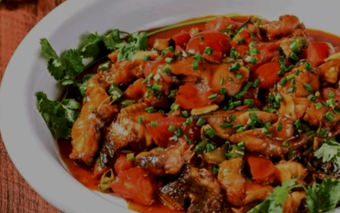 essence of the countryside. Fresh chicken is seasoned with ginger, scallions, and mountain herbs, then stuffed into a fresh green bamboo tube.The tube is sealed and slow-roasted over an open charcoal fire. This unique steaming process infuses the meat with a delicate, sweet bamboo aroma, keeping the chicken incredibly tender and juicy. It’s a fragrant, earthy dish that perfectly complements the rustic charm of the Li River region.