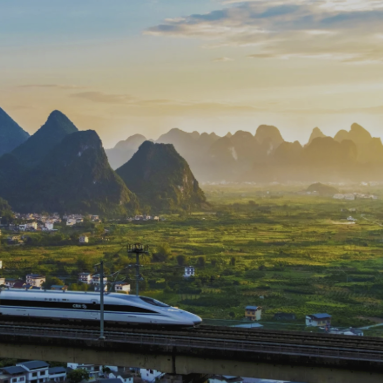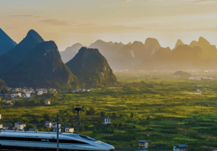 Experience is a unique blend of modern engineering and ancient nature. Located near Xingping, travelers gather at high-altitude viewpoints to watch China’s sleek bullet trains glide through the karst mountain range. As the sun sets, the silver trains look like "silver arrows" piercing through the golden-lit peaks and emerald countryside. It has become a viral sensation for photographers, offering a surreal, cinematic contrast between the high-speed rail and the timeless, tranquil landscape of the Li River valley.