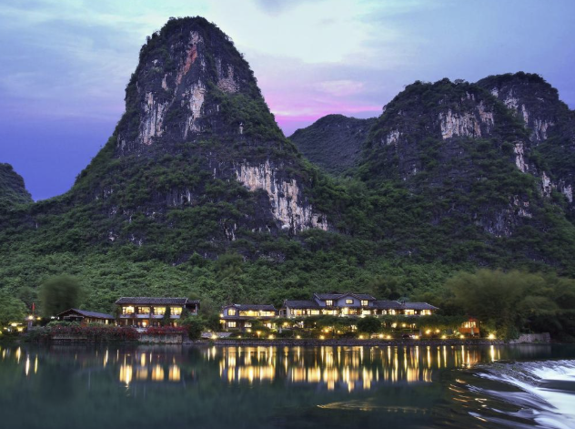 The architecture reflects local heritage, featuring 29 to 34 rooms adorned with handmade bamboo furniture and traditional textiles. Guests can immerse themselves in regional culture through Tai Chi, calligraphy, and cormorant fishing, or relax in river-view suites. Recognized by National Geographic, the retreat offers a soulful connection to the karst landscape, blending rustic charm with exceptional hospitality.