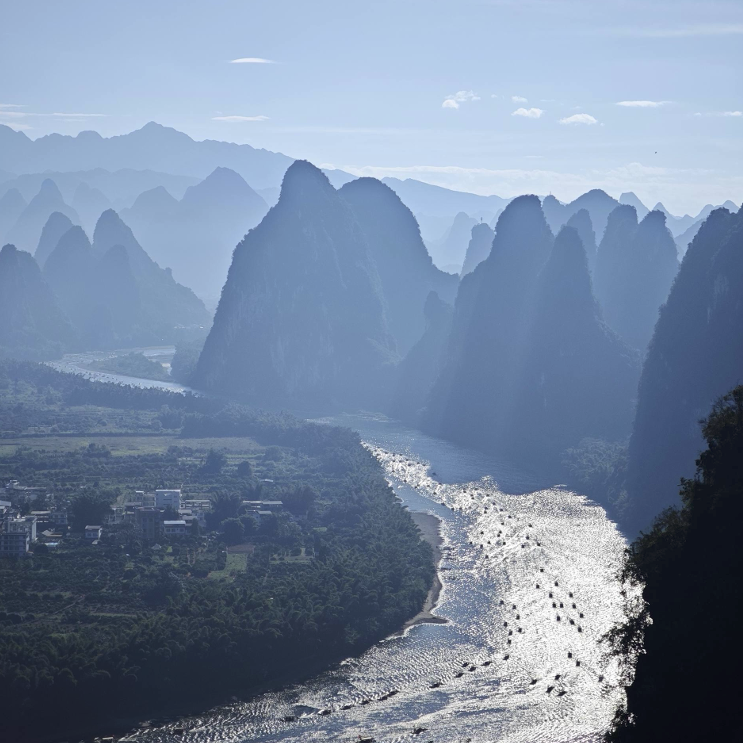 Lined with cycling paths and bamboo raft routes, it blends natural grandeur with rural charm—offering visitors an immersive taste of Guilin’s iconic scenery that inspired ancient Chinese paintings. A must-explore for nature lovers and culture seekers alike!