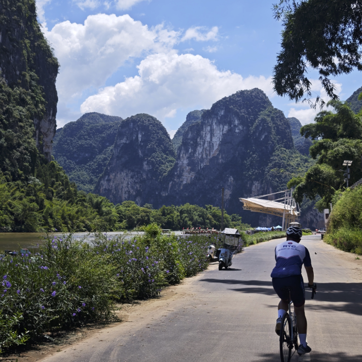 Terrain & Effort: At 60 km, this is considered a "Challenging Route" or "Experienced Player" version. While much of the riverside path is flat, the full loop involves navigating local township roads and some moderate climbs through the karst hills.