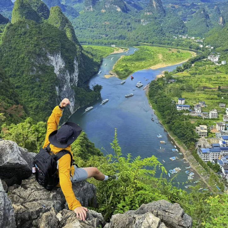 Discover the definitive view of Yangshuo at the Xianggong Mountain Viewing Platform. While most tourists arrive by road, we will guide you on an exclusive secret 1-hour hike through hidden trails and lush nature.